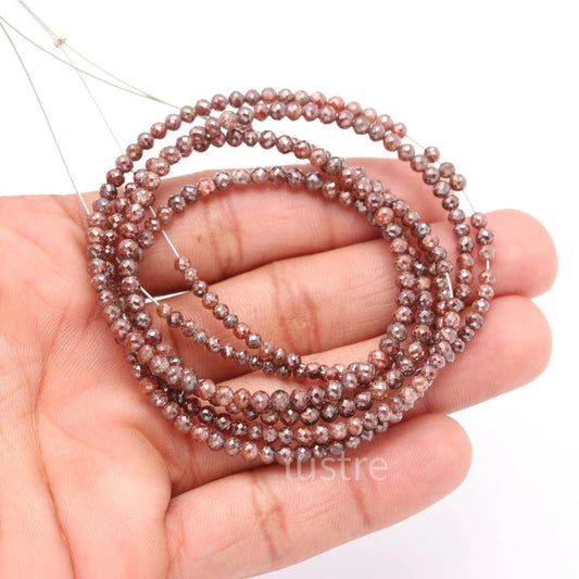 Natural Champagne Red Diamond Faceted Round 2.5 - 3.5 mm Diamond Beads Strands