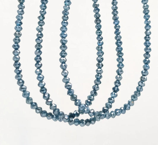 100% Natural Blue Diamond Faceted 2.5 - 3 mm Rondelle Bead Strands For Jewelry Making