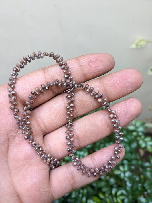 100% Natural Champagne Diamond 2.5 - 4 mm Briolette Faceted Diamond Beads