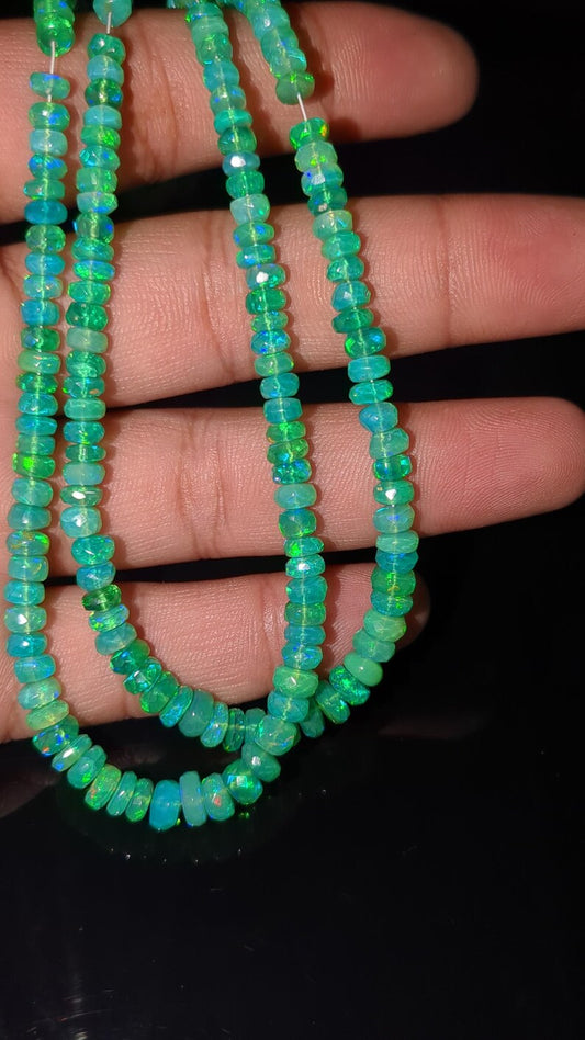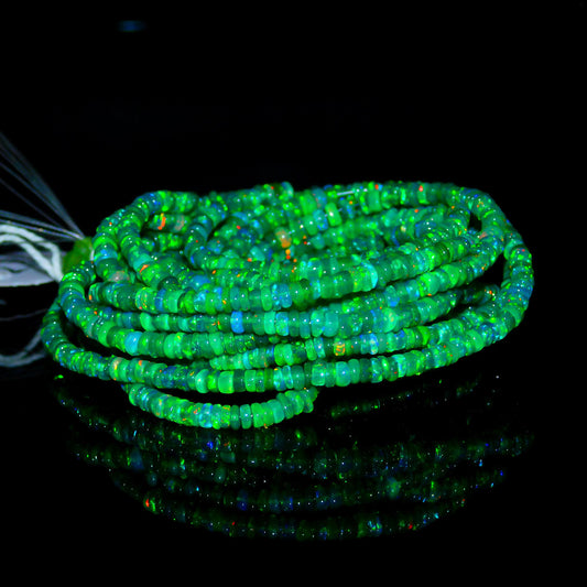 Green Ethiopian Opal Smooth Rondelle Beads Welo Fire Opal 3 - 5 mm Natural Ethiopian Opal Beads