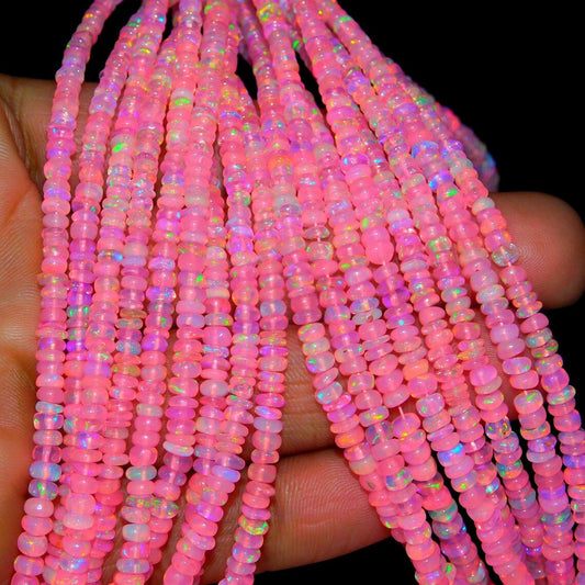 Pink Ethiopian Opal Beads 4-6 mm Rondelle Smooth 16 Inches Strands