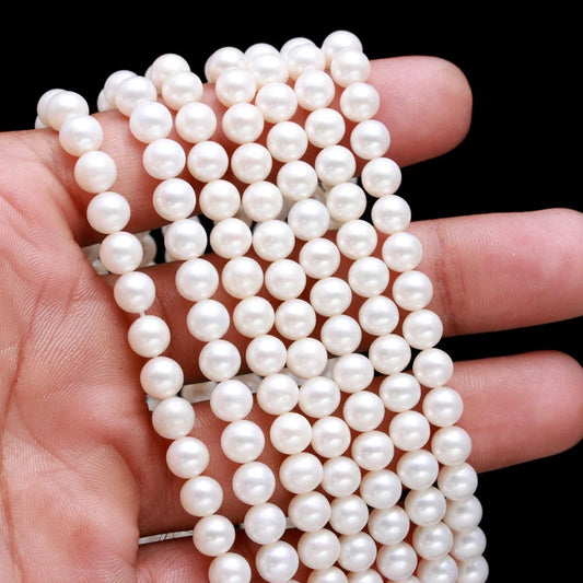 Round Beads 6 mm Smooth Nuggets Natural White Pearls Loose Beads Gemstone