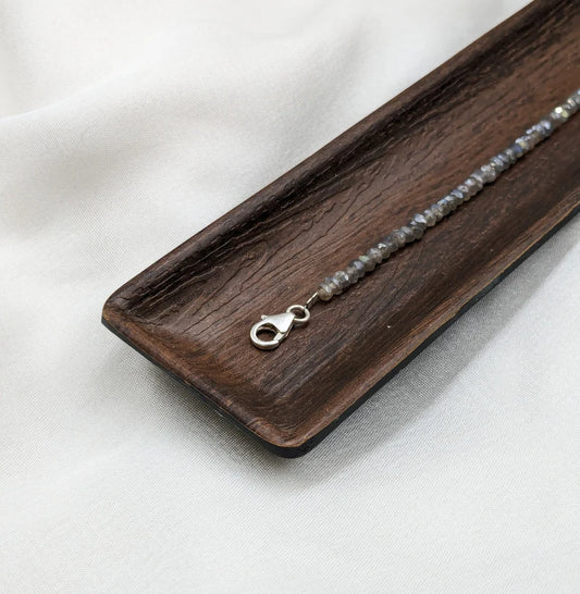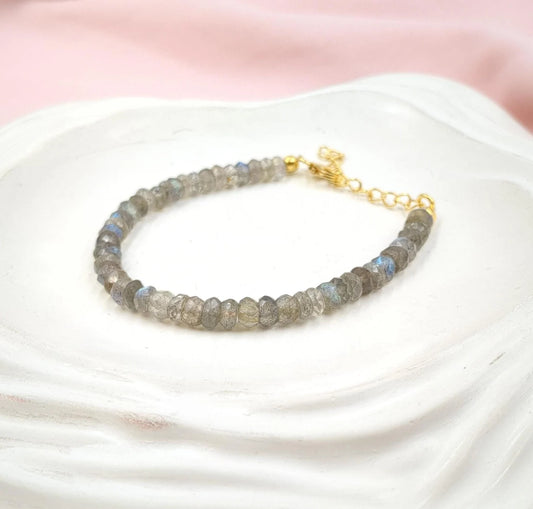 925 Sterling Silver Labradorite Faceted Rondelle 3.5 mm Beads 7 Inches Bracelet