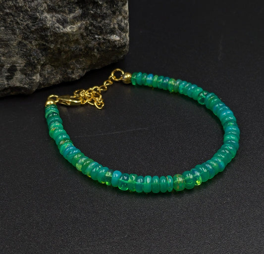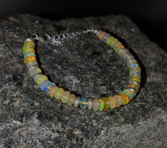 AAA+ Ethiopian Opal Bracelet Fire Opal Bead 925 Sterling Silver Bracelet