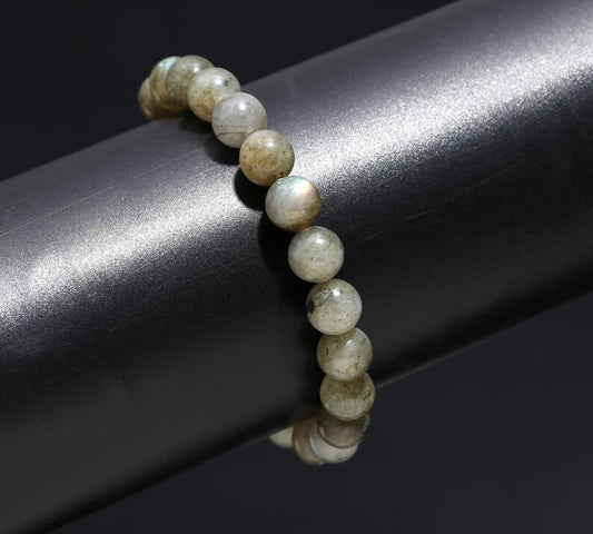 100% Natural Healing Labradorite 8 mm Smooth Round Beaded 7 Inches Bracelet
