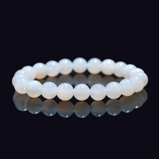 100% Natural Moonstone Crystal 8 mm Beaded Smooth Round 7 Inches Bracelet