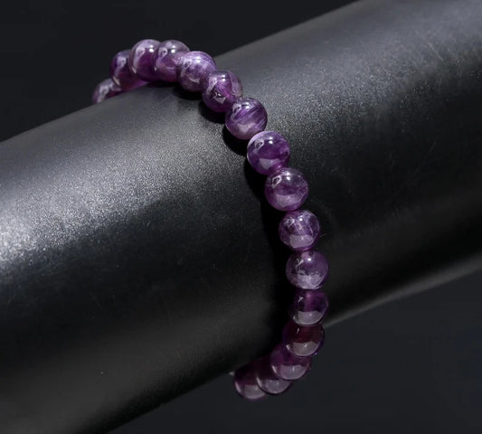 100% Natural Amethyst Bead Bracelet 8 mm Round Beaded 7 Inches Bracelet