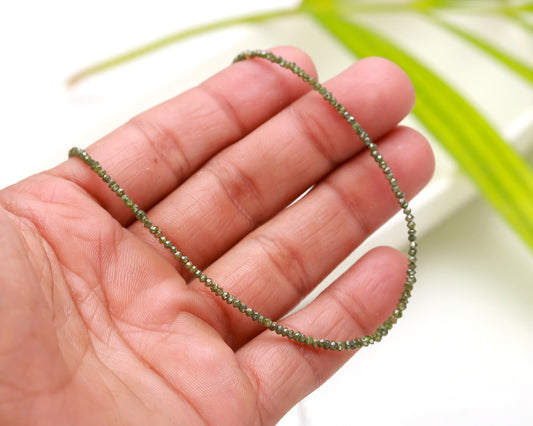 Green Diamond 925 sterling 1.5 - 2.3 mm Beaded Faceted Rondelle 16 Inches Necklace