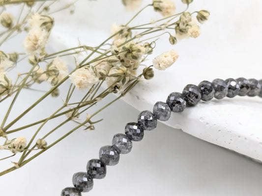 Gray Diamond Bracelet 3 - 4.5 mm Round Beads Faceted Diamond Bead