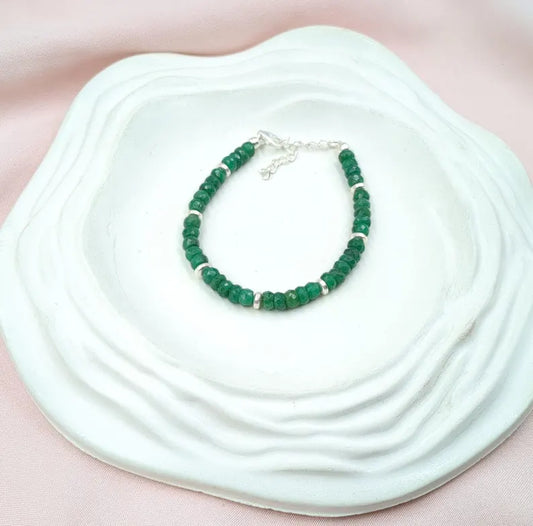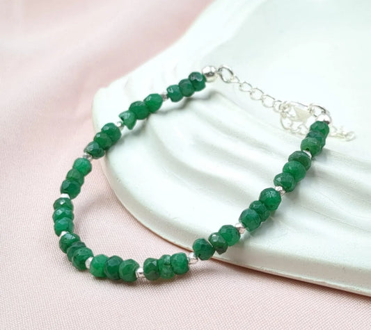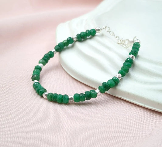 Emerald Beaded Faceted 2.5 - 3.5 mm Rondelle 925 Sterling Silver 16 Inches Necklace