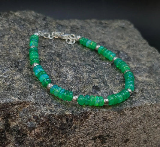 Green Ethiopian Opal Bracelet 925 Sterling Silver Bracelet