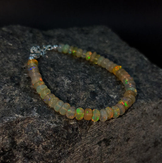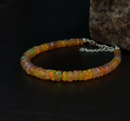 Ethiopian Opal Bracelet 925 Sterling Silver Bracelet Fire Opal Beads