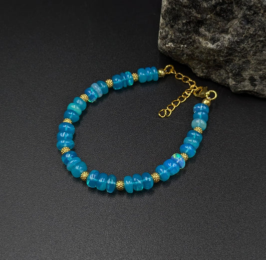 Ethiopian Blue Opal Bracelet 18K Gold Filled Handmade Jewelry