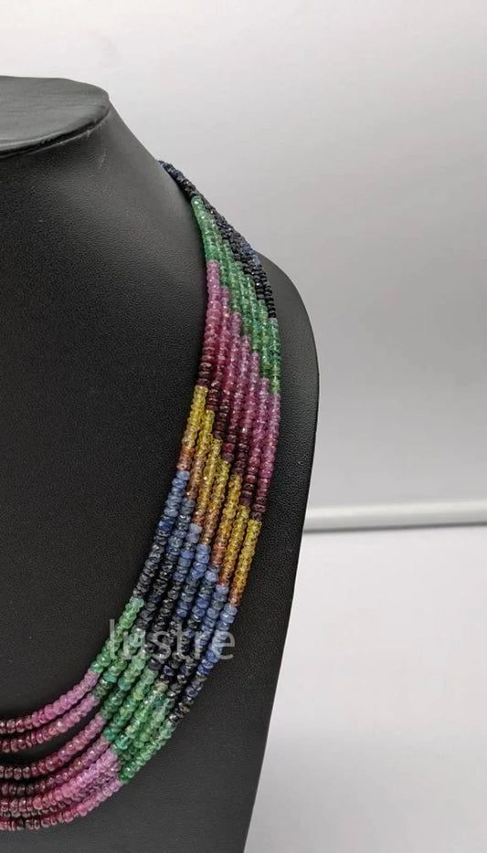 Elegant Multi Sapphire Necklace 3.5 - 4.5 mm Beaded 7 Layer Necklace