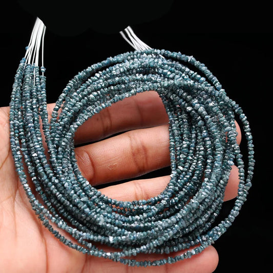 Blue Rough Uncut Diamond Bead 2 - 3 mm Natural Raw Nugget 15.5 Inches Strands