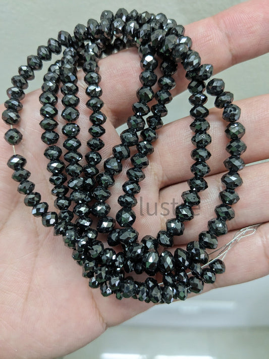 100% Natural Black Diamond Bead 1.6 - 2.4 mm Rondelle Diamond Bead 15 Inches Strands