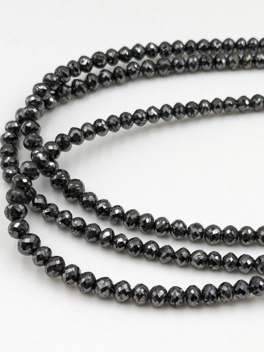 BEST Quality Black Diamond Beads Sparkling Faceted Rondelle Diamond Beads 100% Natural 3.2 - 4 mm Faceted Black Diamond Beads