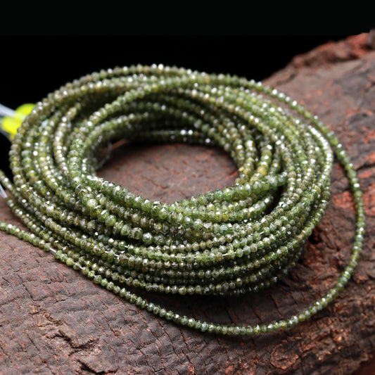 Green Diamond Faceted Rondelle 1.8 - 2.2 mm Natural Dark Green Diamond Bead Strands