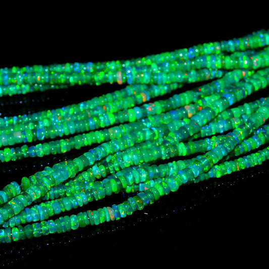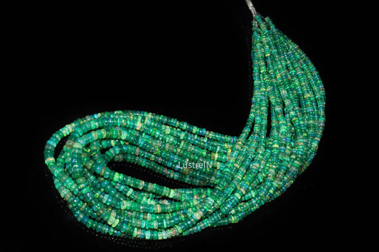 Green Ethiopian Opal Smooth Rondelle Beads Welo Fire Opal 3 - 5 mm Natural Ethiopian Opal Beads