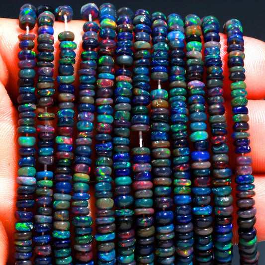 Ethiopian Black Opal Beads 3 - 5 mm Plain Rondelle Beads AAA+ Natural Opal Smooth Welo Fire Opal Birthday Gift For Her