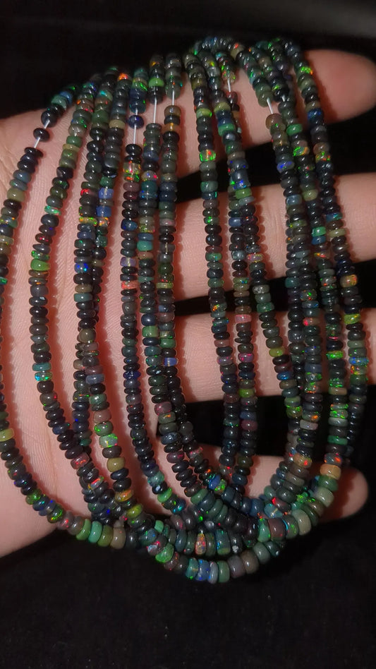 Black Opal Ethiopian Opal Beads 100% Natural Smooth Rondelle Ethiopia Opal Beads 3 - 4 mm Welo Fire Opal Beads
