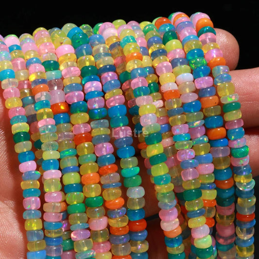 Ethiopian Opal Beads Welo Fire Ethiopia Opal Beads Multi Color 4 - 6 mm Smooth Rondelle Ethiopian Opal Beads